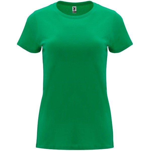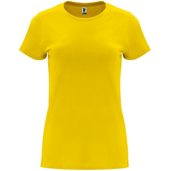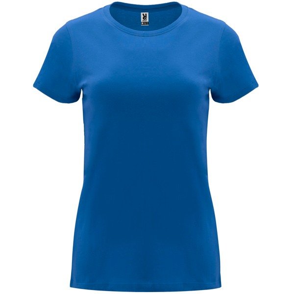 Camiseta de manga corta entallada en cintura. Cuello redondo en canalé 1×1. Cubrecosturas en cuello del mismo tejido.