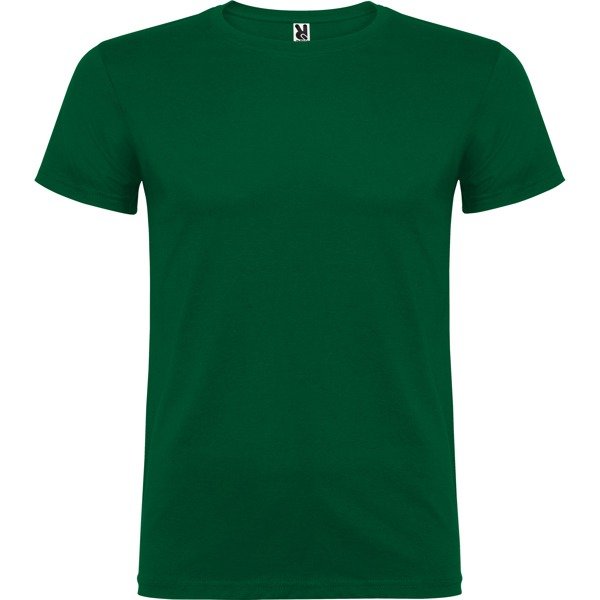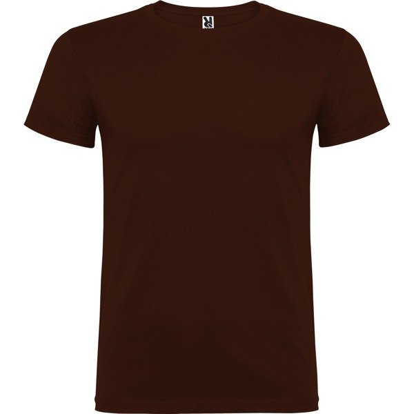 Camiseta de manga corta tubular en tallas de adulto y costuras laterales en tallas de niño. Cuello redondo en canalé 1×1. Cubrecosturas en cuello del mismo tejido