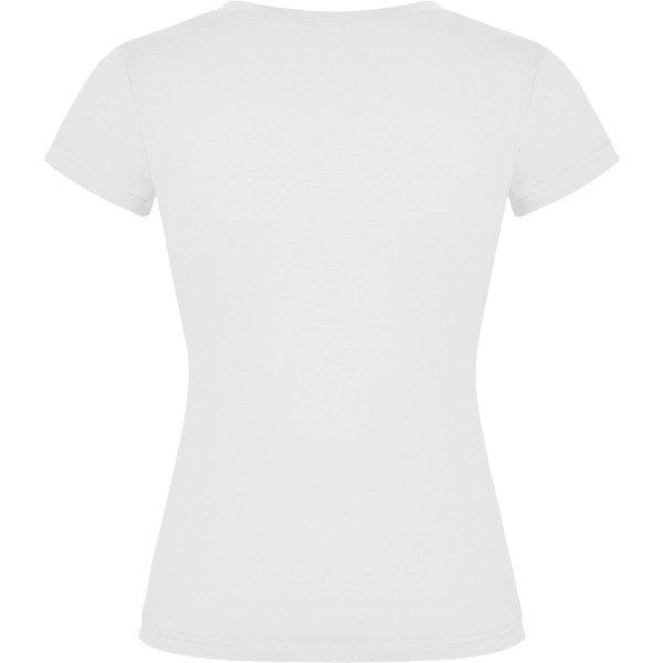 Camiseta de manga corta entallada en cintura. Cuello de pico en canalé 1×1. Cubrecosturas en cuello del mismo tejido.