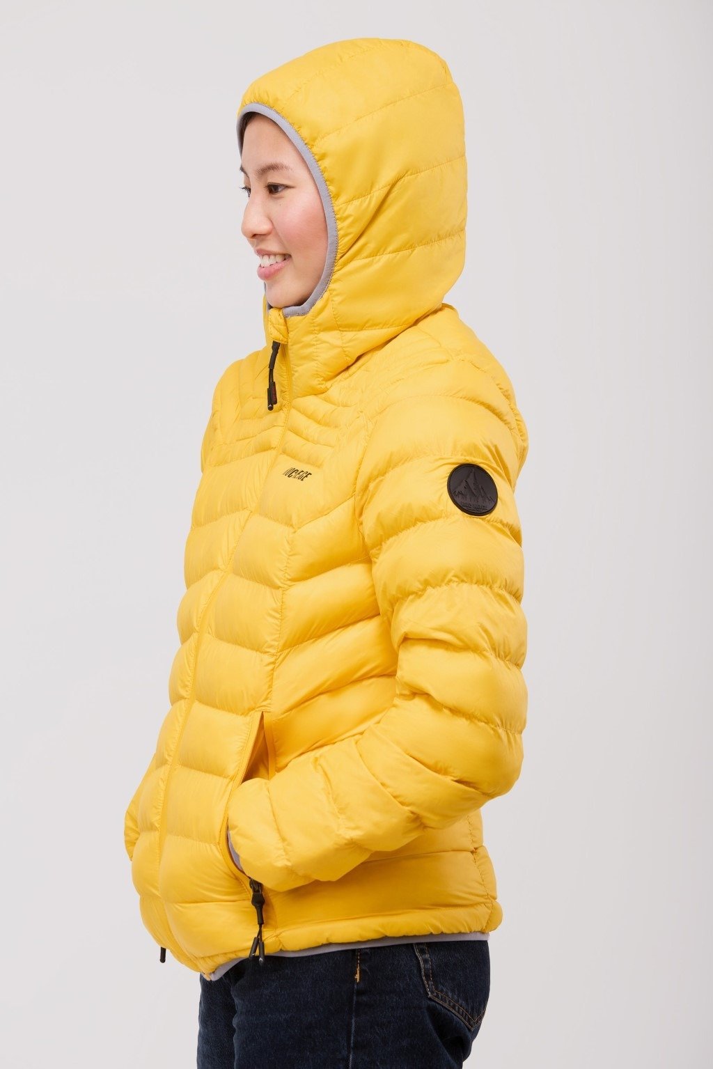 Cazadora RËFAR de mujer acolchada con un patrón de costuras que potencian la imagen del canesú característico de la marca. Capucha y cuello alto. Suave tejido exterior 100% nylon.
