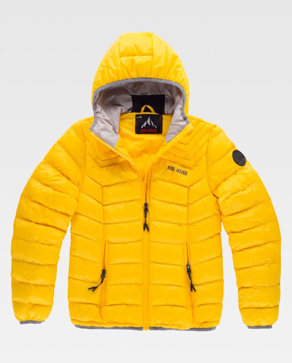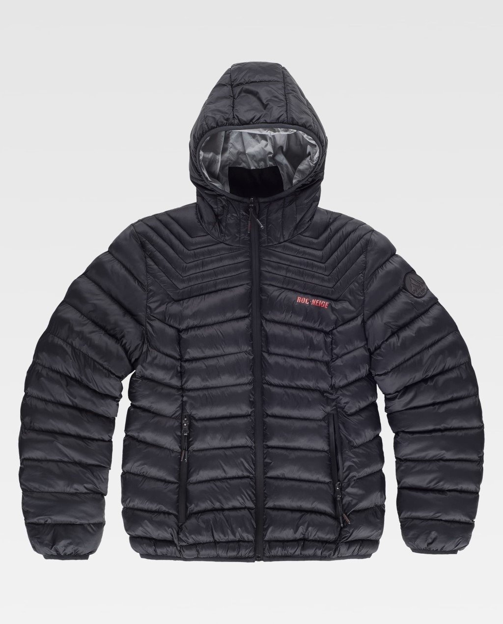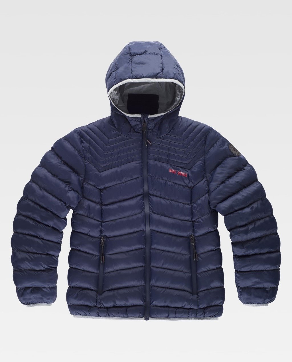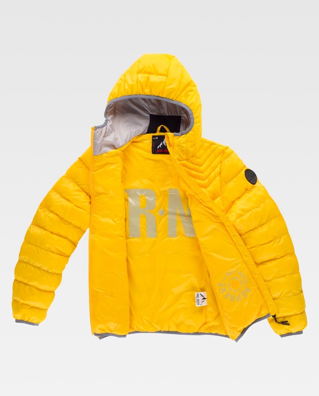 Tratamiento de repelencia al agua y cremalleras impermeables. Dos bolsos laterales interiores con cremallera. Ribeteado con bies elástico. Logotipos estampados en pecho y espalda y detalles de estampados en el interior. Poder calorífico: 300+ Relleno sostenible procedente del reciclado de botellas de agua con el certificado Repreve®.
