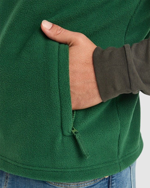Chaleco polar con cremallera frontal. Cuello alto. Bolsillos con cremallera integrados en costuras de los paneles laterales. Cubrecosturas en cinta de espiga. Todos los accesorios al tono. Ajustadores laterales en el interior.