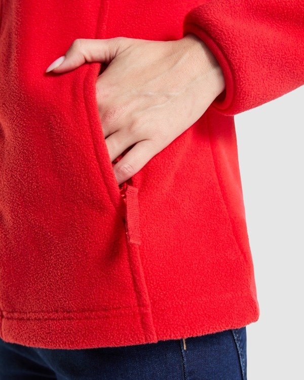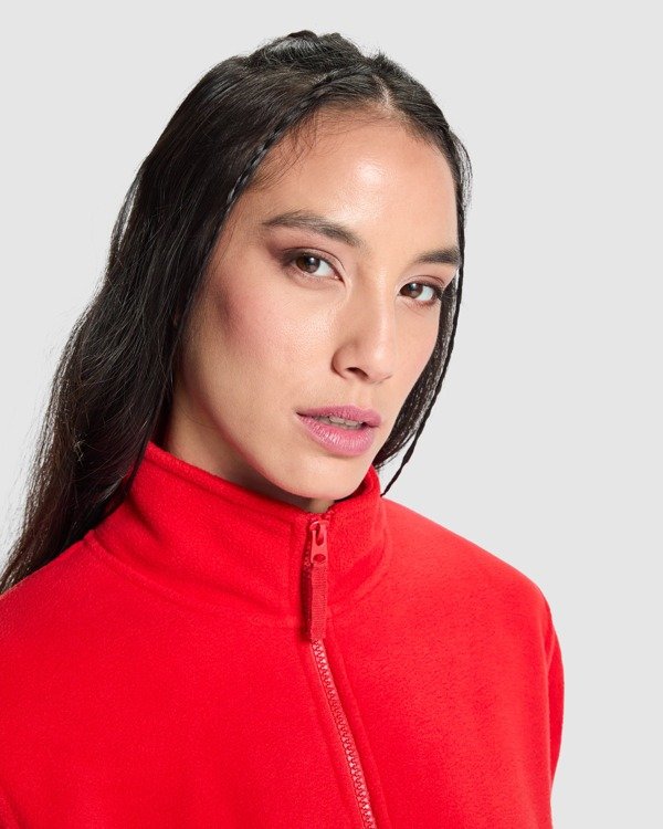 Chaqueta polar con cremallera frontal de mujer. Cuello alto. Puños con vivo elástico. Bolsillos con cremallera integrados en costuras de los paneles laterales. Cubrecosturas en cinta de espiga. Todos los accesorios al tono. Ajustadores laterales en el interior.