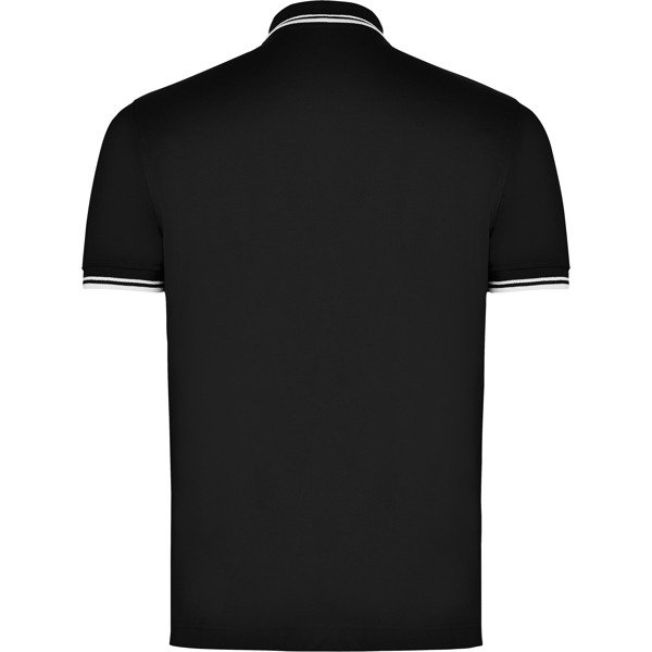 Polo de manga corta de algodón peinado. Punto piqué. Cuello y mangas tejidos 1×1 a contraste de color. Tapeta de 3 botones a contraste de color. Cubrecosturas en cuello del mismo tejido. Aperturas laterales en bajo.